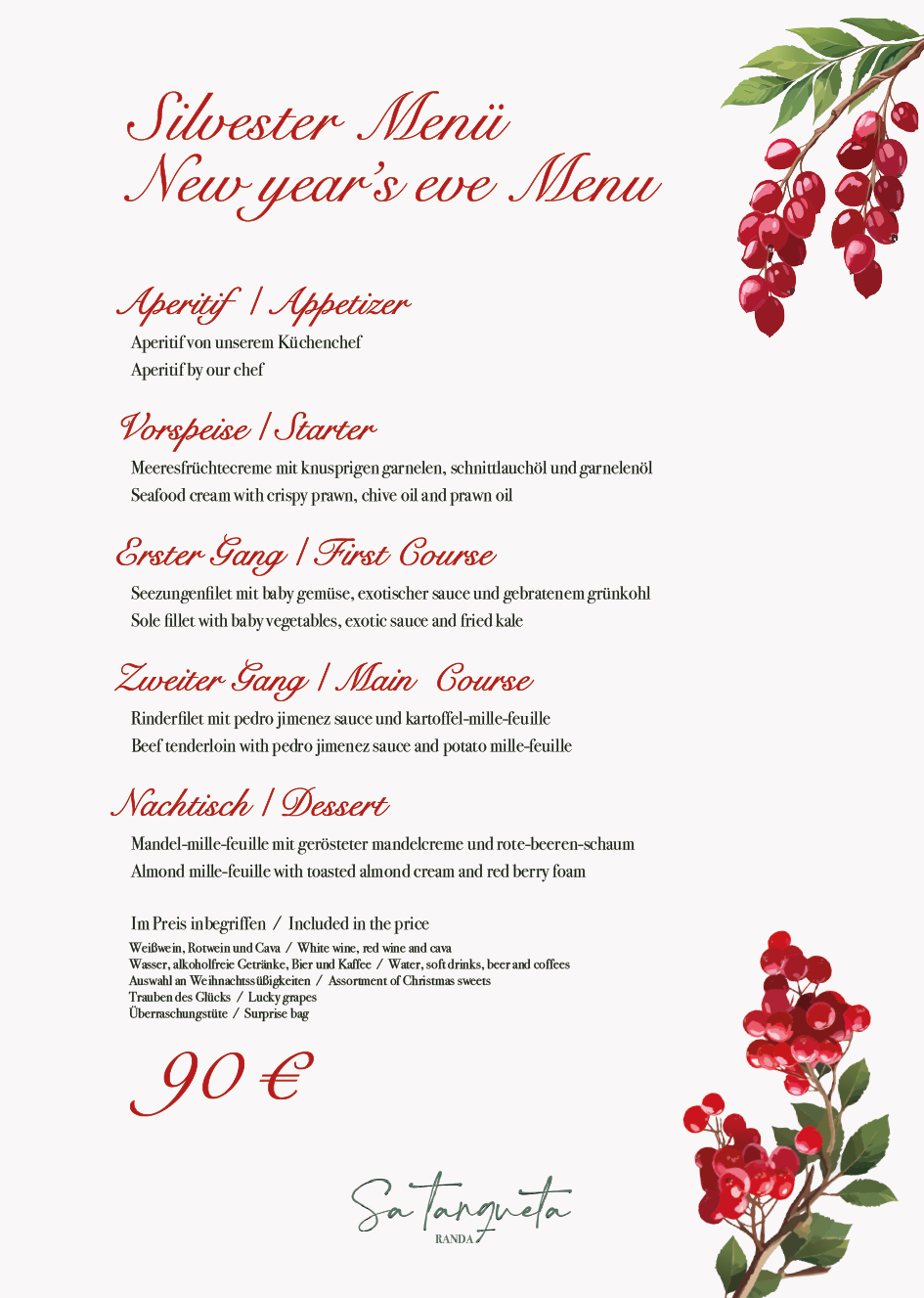 MITTWOCH, 31. DEZEMBER: Silvestermenü